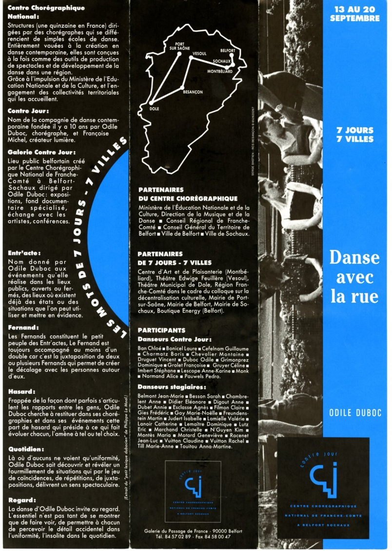 Quinze danseurs : Chloé Ban, Laure Bonicel, Guillaume Cefelman, Boris Charmatz, Montaine Chevalier, Vincent Druguet, Odile Duboc, Dominique Grimonprez, Françoise Grolet, Céline Gruyer, Stéphane Imbert, Anne-Karine Lescop, Monk, Alice Normand, Pedro Pauwels.