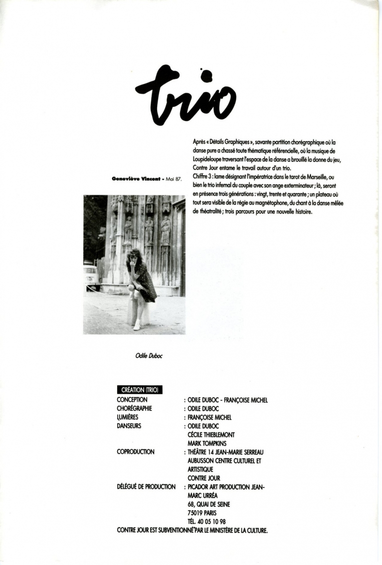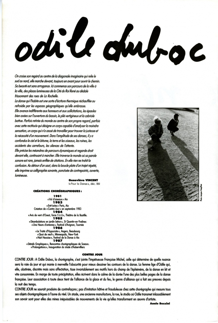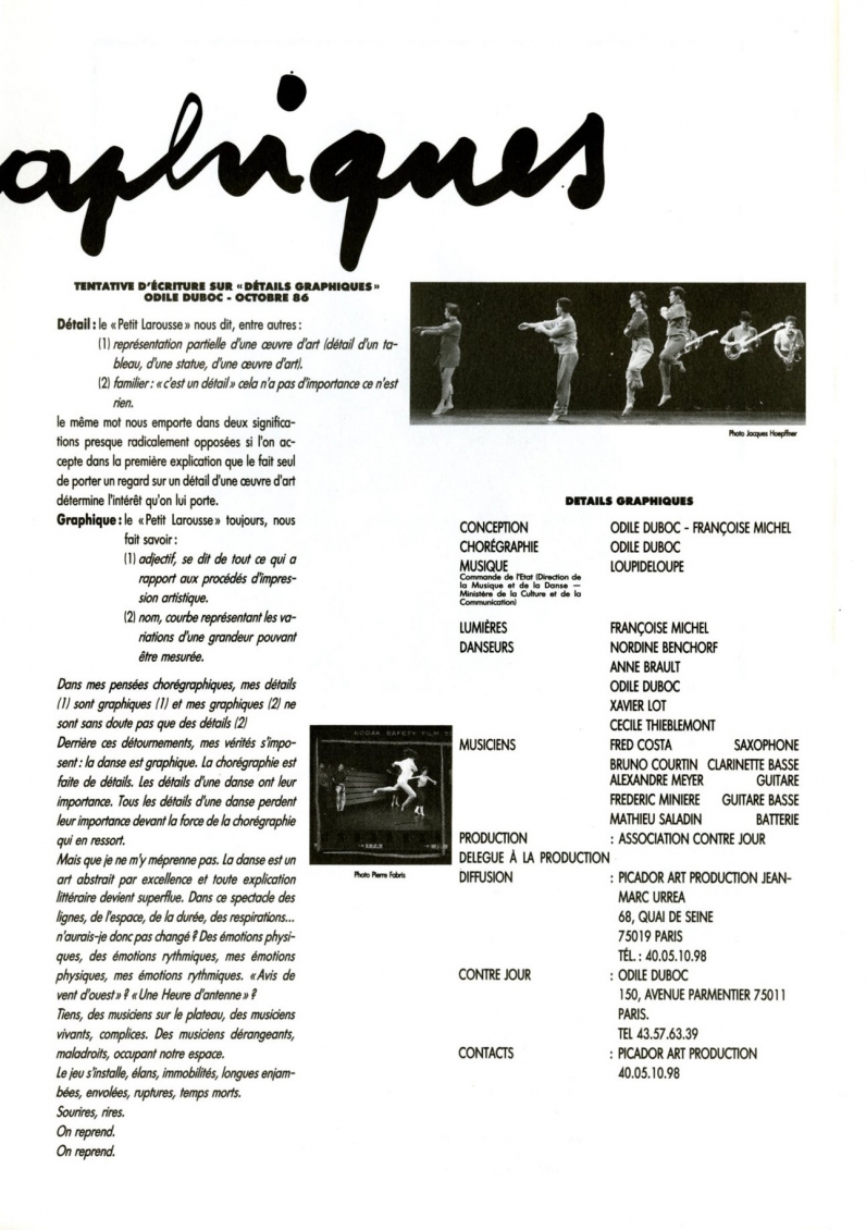 Cinq danseurs : Nordine Benchorf, Anne Brault, Odile Duboc, Xavier Lot, Cécile Thiéblemont.