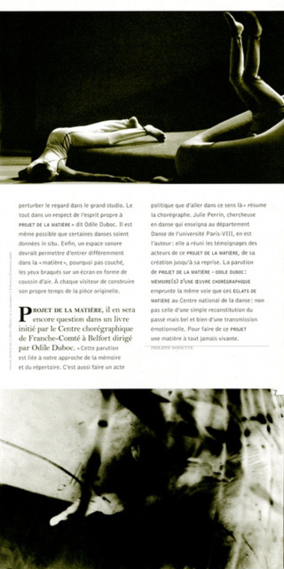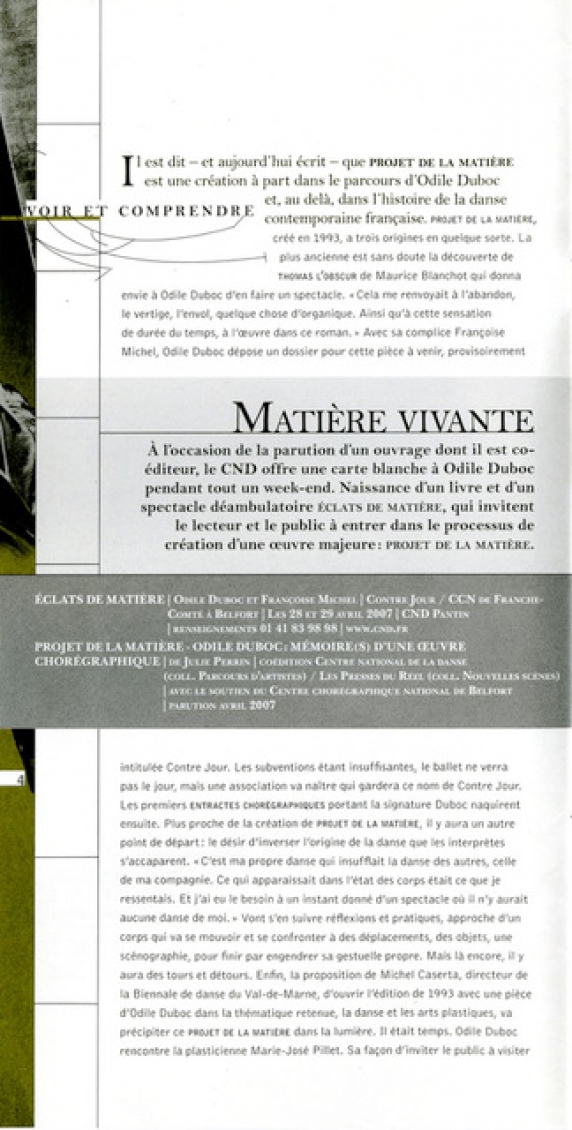 Projet de la matière, Odile Duboc mémoire(s) d'une œuvre