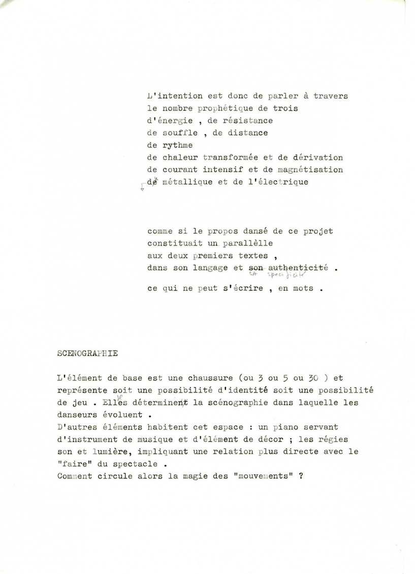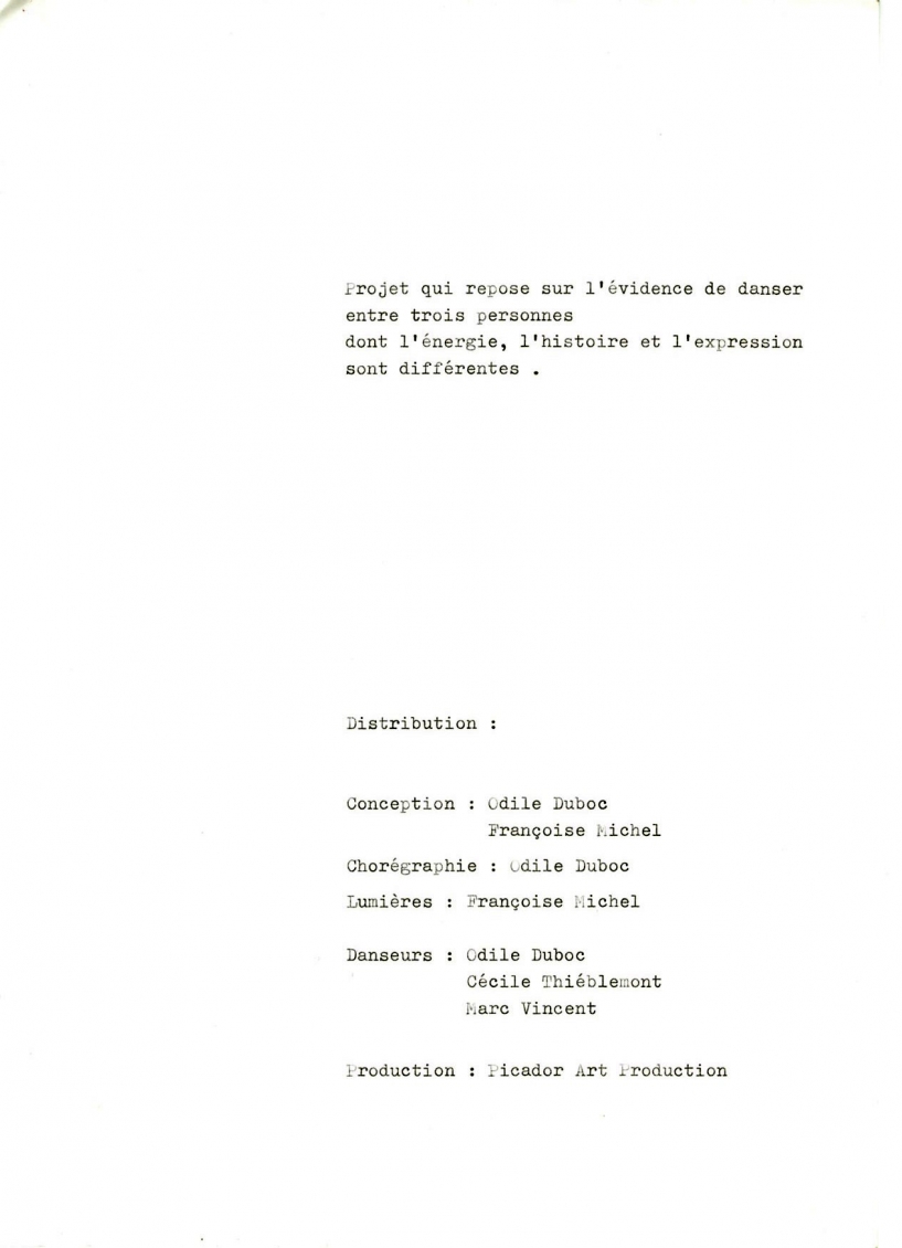Trois danseurs : Odile Duboc, Cécile Thiéblemont, Mark Tompkins, et Françoise Michel sur le plateau.