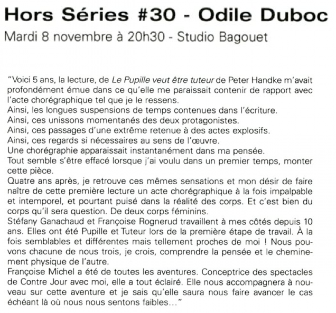 Scénographie, costume, musique : Odile Duboc et Françoise Michel