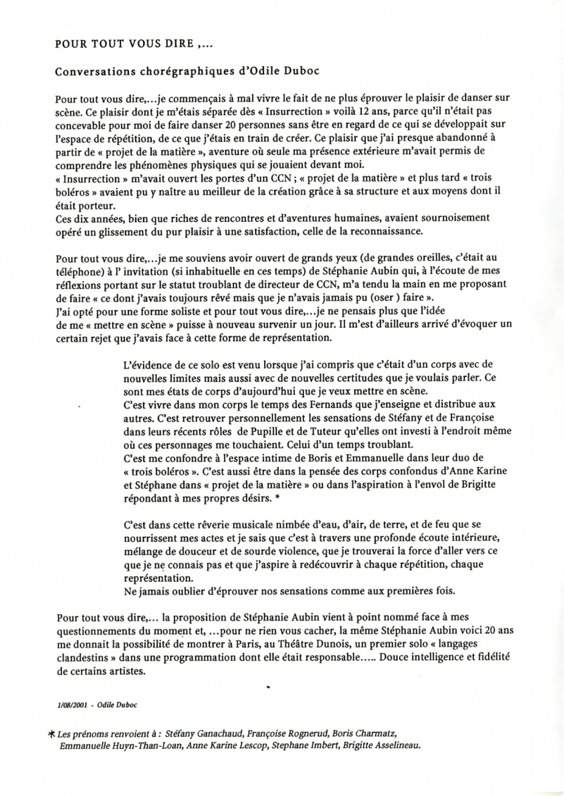 → Pour tout vous dire,...conversations chorégraphiques (2001)