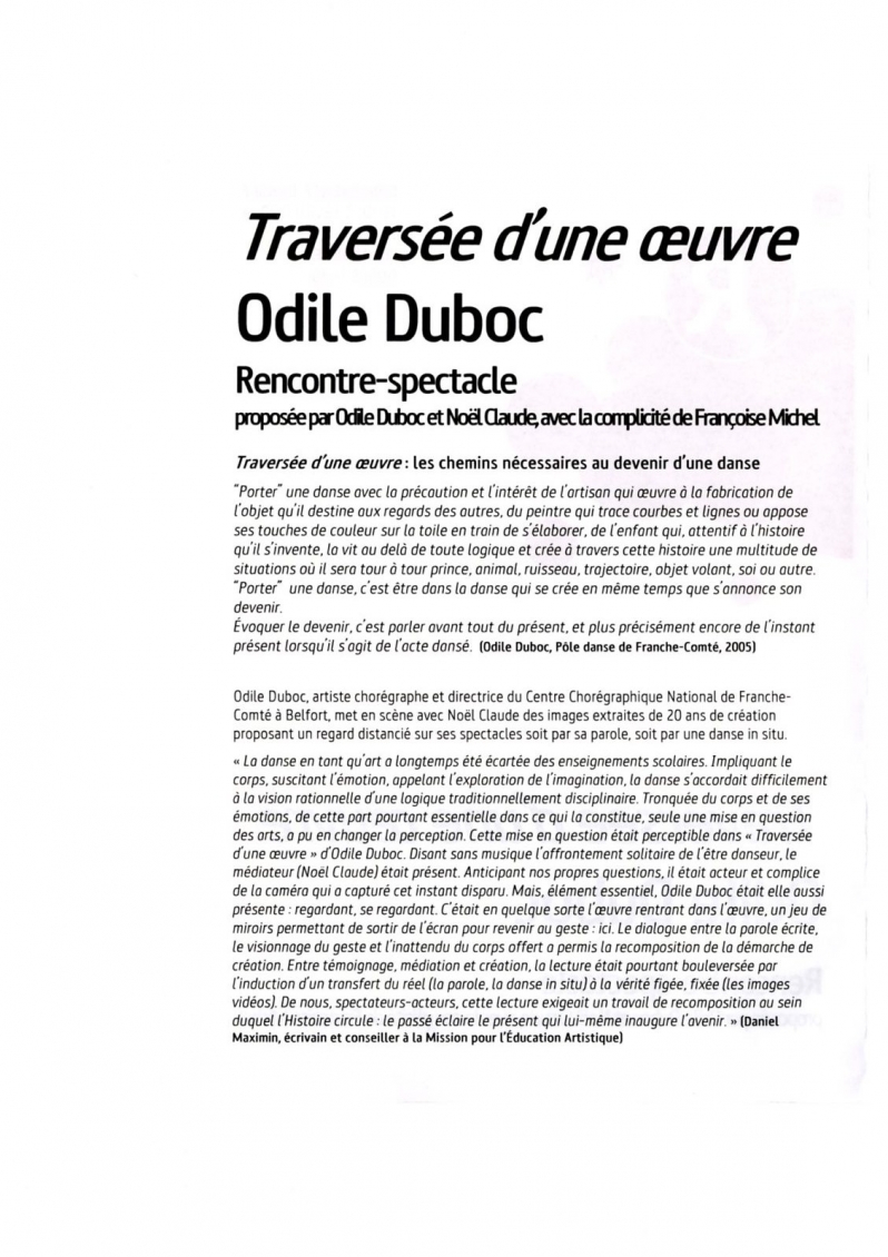 Pour mémoire est un espace dédié à Odile Duboc,