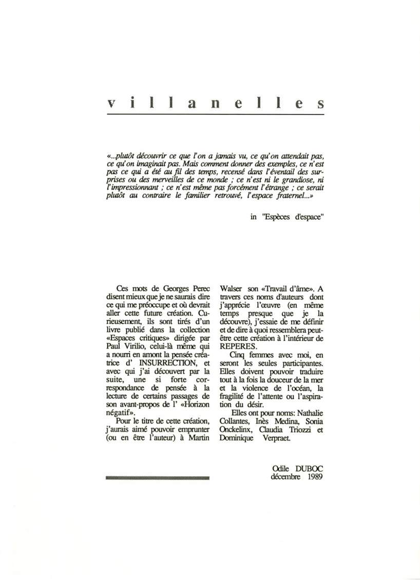 Six danseuses : Nathalie Collantes, Odile Duboc, Inès Medina, Sonia Onckelinx, Claudia Triozzi, Dominique Verpraet.